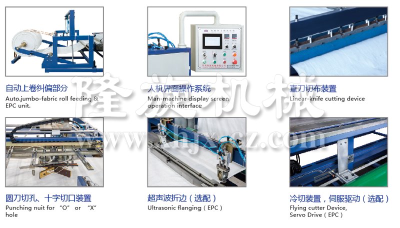 ? 進口伺服控制布長,精度高、速度快。? 適用于集裝袋基布、片布的切斷及袋底、蓋、口布的各種熱切要求。