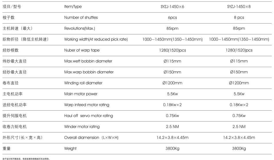 產(chǎn)品概述:產(chǎn)品特點●大凸輪結(jié)構(gòu),具有高效,節(jié)能,低噪音等特點;●梭子采用滾輪形式,無需潤滑,減少污染;●人機操作界面:功能強大,集中控制,操作更簡便;●自動控制經(jīng)絲,保持恒張力,使布面更平整;●適用于集裝袋、篷布等。產(chǎn)品尺寸:技術(shù)參數(shù):